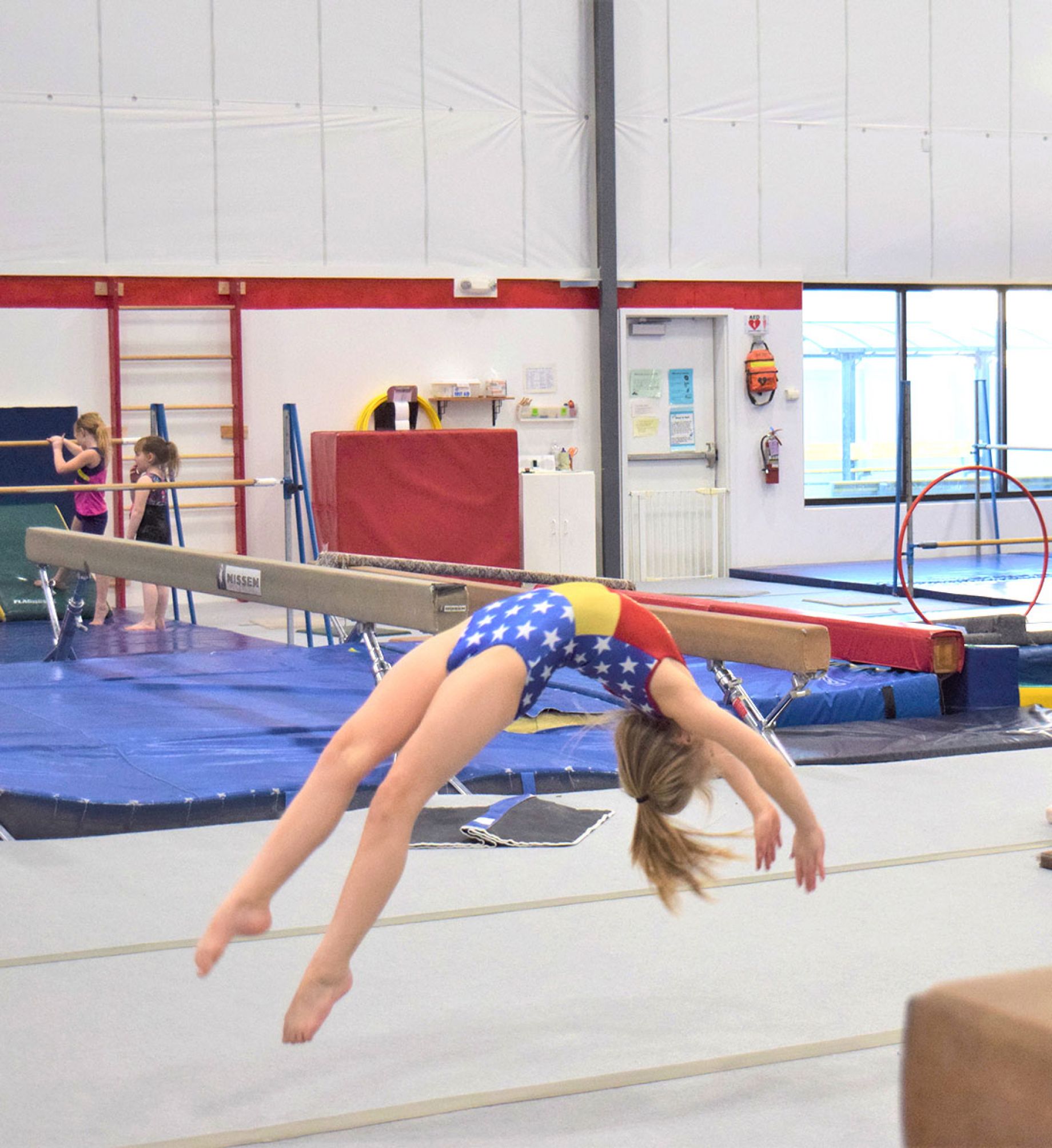 Our tumbling classes also make a great supplement to our progressive gymnastics classes. We teach tumbling in progressions so students find success along the way to learning bigger skills safely.